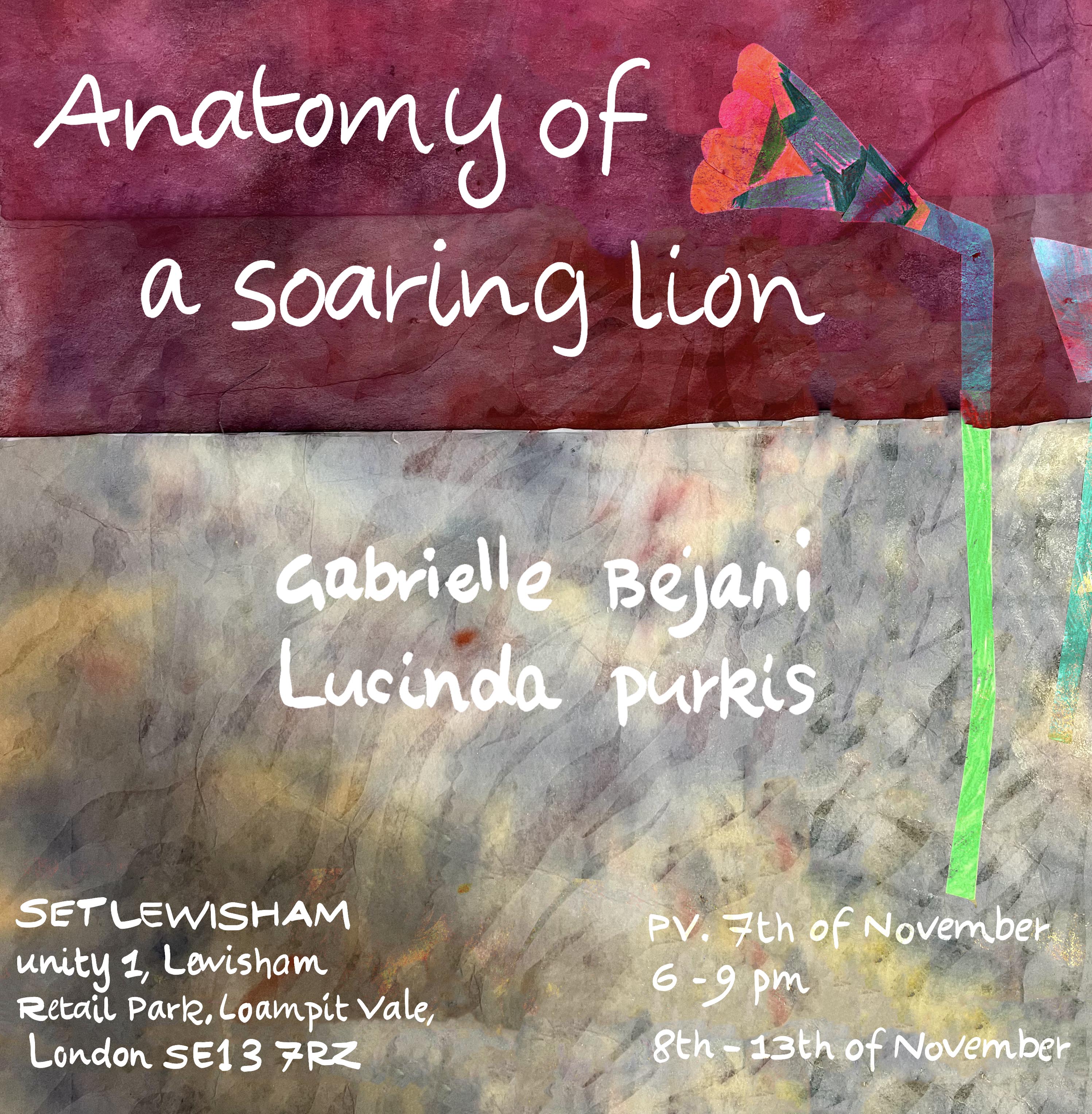 Anatomy of a Soaring Lion is a two-person show by Gabrielle Bejani and Lucinda Purkis, presenting a series of new, multi-disciplinary collages incorporating delicate papers, textiles, procion-dyed and ink-painted fabric, and plant matter. These works serve as windows into both artists’ imaginative worlds.