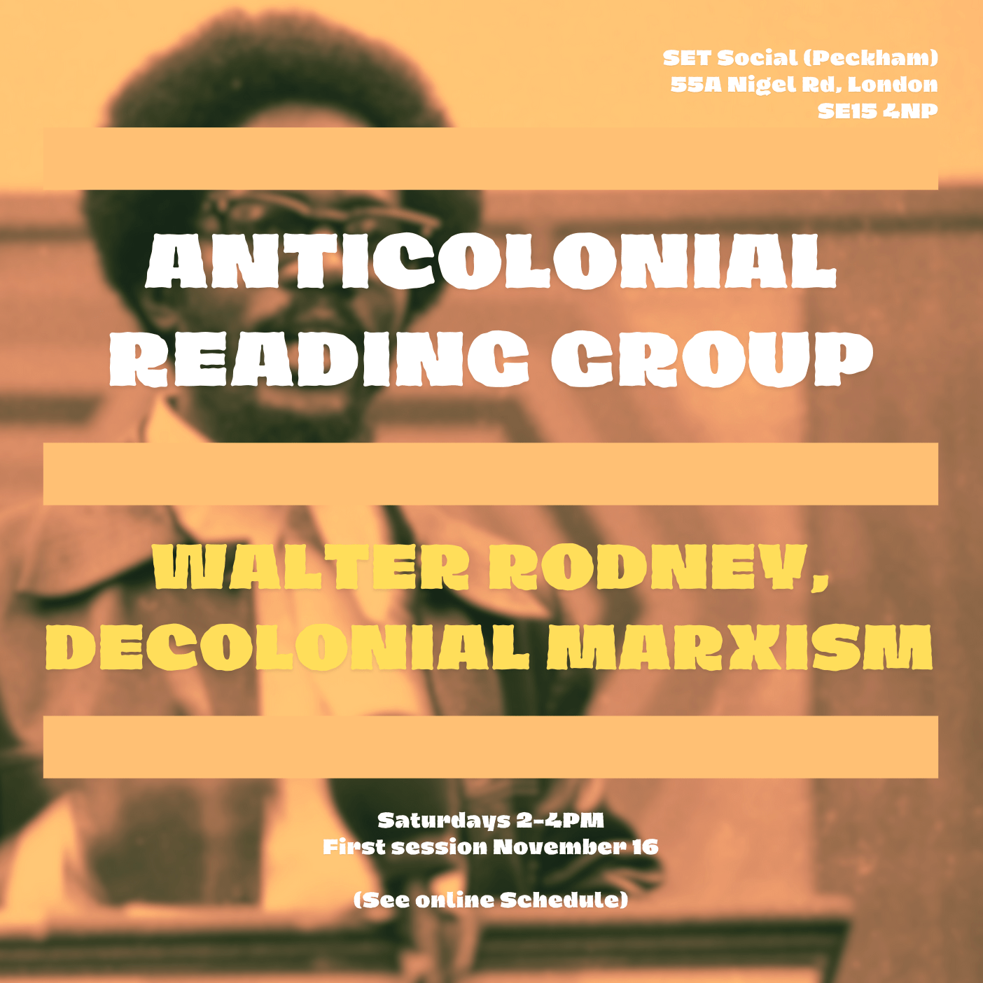 Nov 16 Anticolonial Reading Group: Winter Edition! 14:00 – 16:00 SET Social 55a Nigel Road, London Event Details Get Directions
